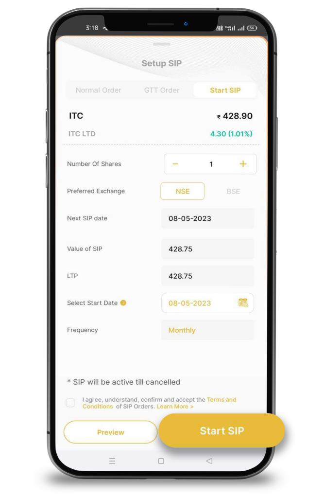 To create a stock SIP, follow these steps: