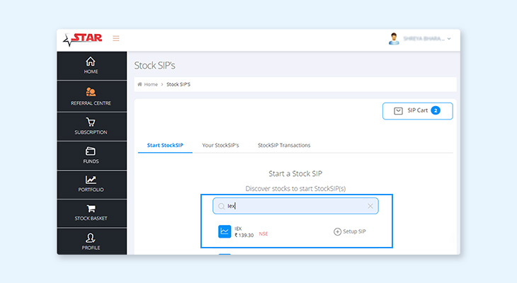 Step 3: Search for the stock that you wish to do a SIP in. Let’s take IEX for instance and click on the Setup SIP.