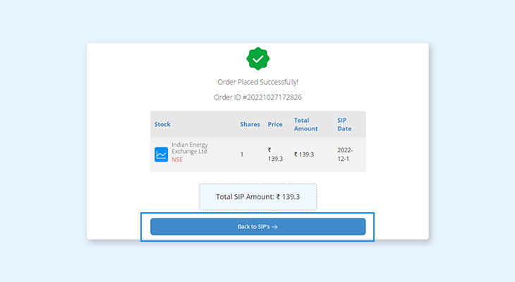 Step 7: Congratulations! Your SIP order is placed successfully.