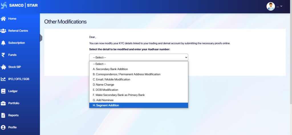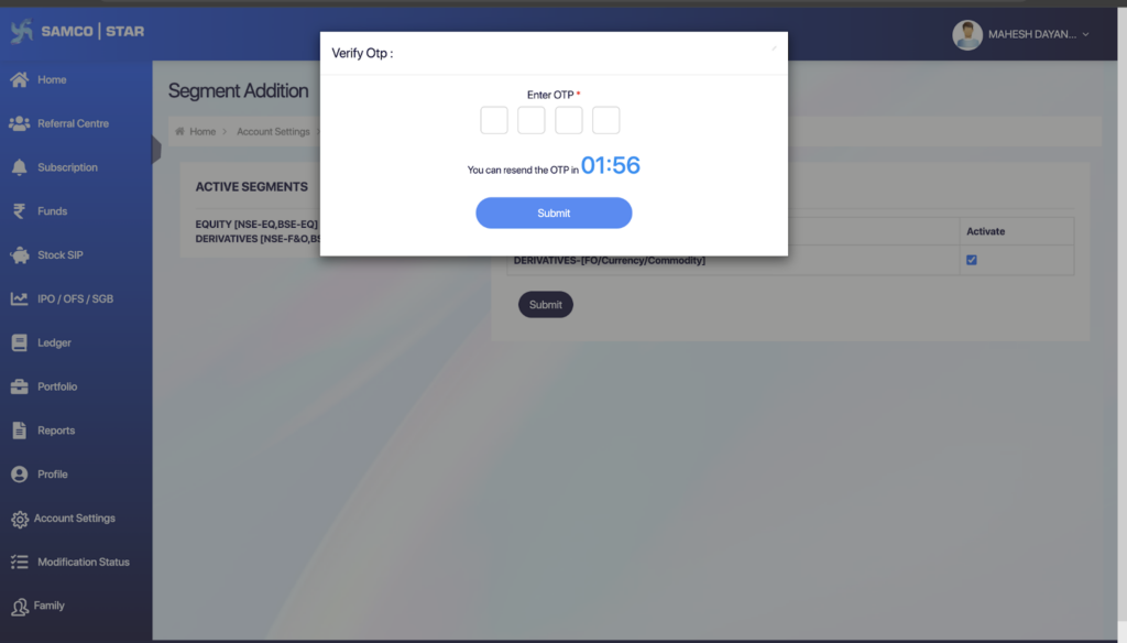 To begin trading in additional segments such as Equity Derivatives, Currency, or Commodities, it’s essential to first activate those segments in your SAMCO demat account. This ensures you’re fully compliant and authorized to trade in these markets.