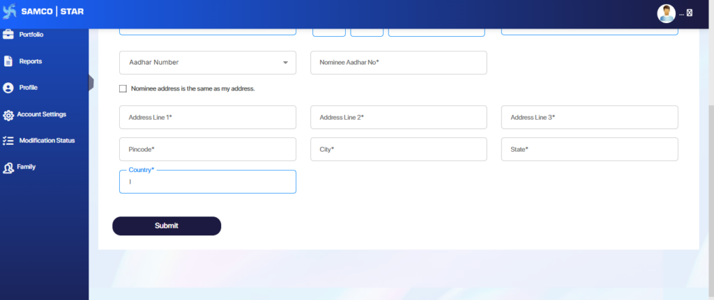 Once the address details are filled correctly, click Submit to complete the nominee registration process.