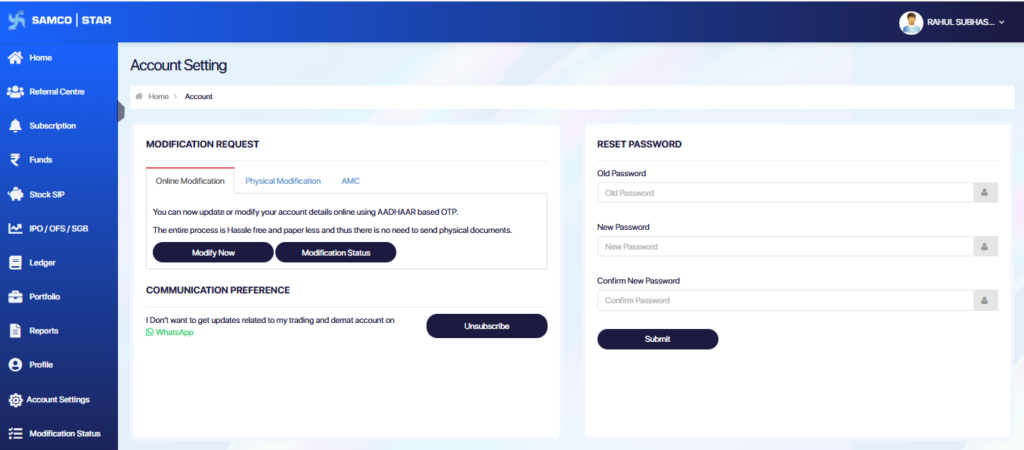 Once you’ve submitted your date of birth update request along with the necessary documents, it will enter the verification process. To stay informed about the progress, simply navigate to the ‘Modification Status’ tab in your Samco STAR Back Office.