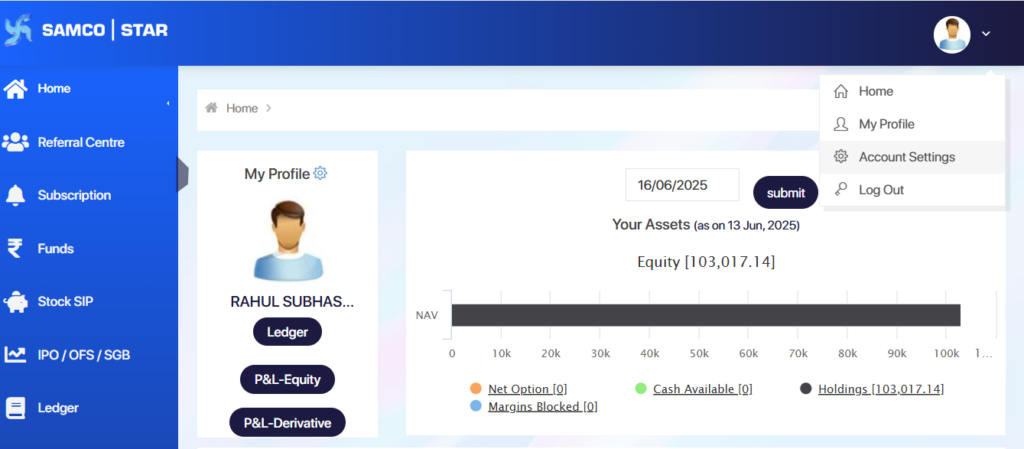 Note: The credentials for the Samco Star Back Office and the Samco Mobile App are different. For Star Back Office, the password can either be your PAN number or the password you have set specifically for the Back Office.