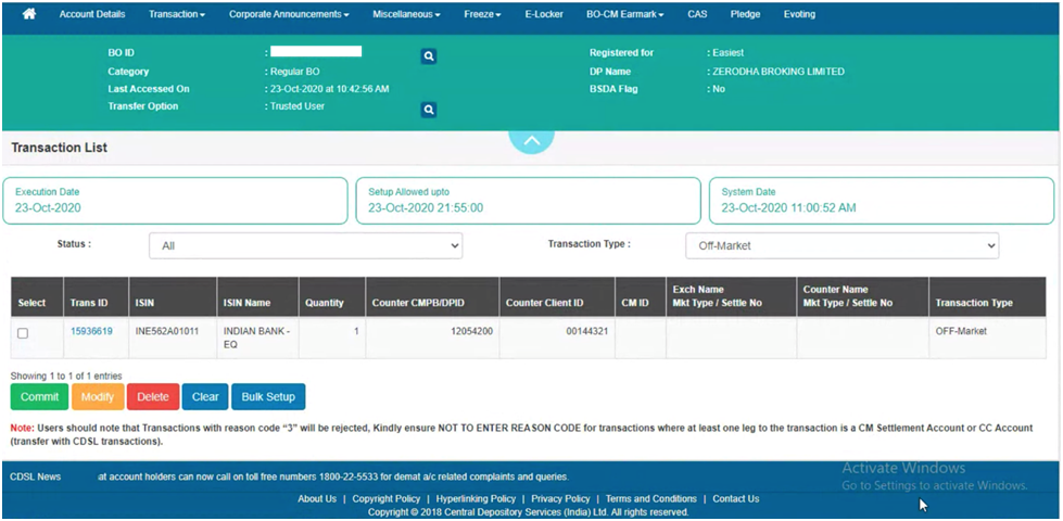 This is now sent to your DP for confirmation. On confirmation, the request is approved and the transfer will be done.