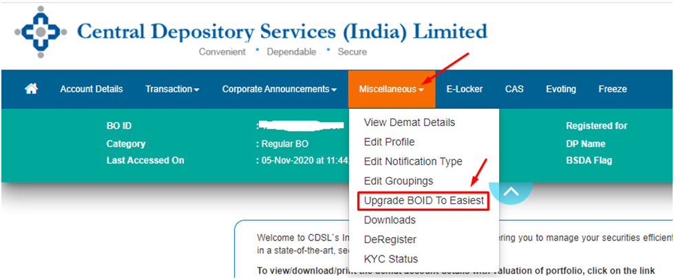 - Log in to Myeasi by visiting https://web.cdslindia.com/myeasi/Home/Login