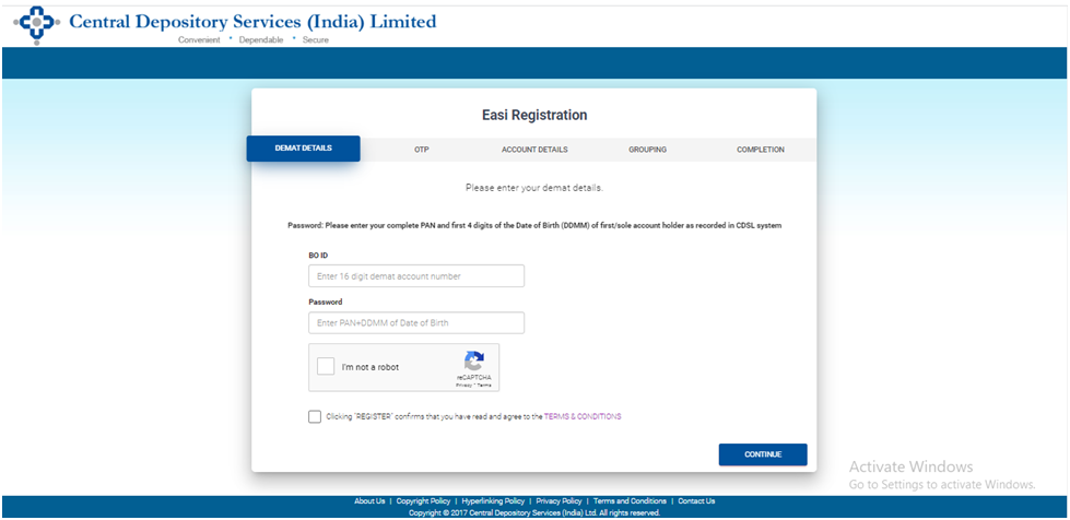 - Visit https://web.cdslindia.com/myeasitoken/Registration/EasiRegistration