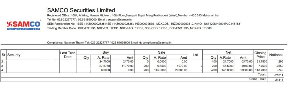 Excess Shortfall (K): It shows if you have used all your available margin or if you need to deposit more funds to avoid a penalty. If the number is positive, then you have funds available to be used as margin. On the other hand, if the number is negative, then you need to deposit funds to your Samco Ledger